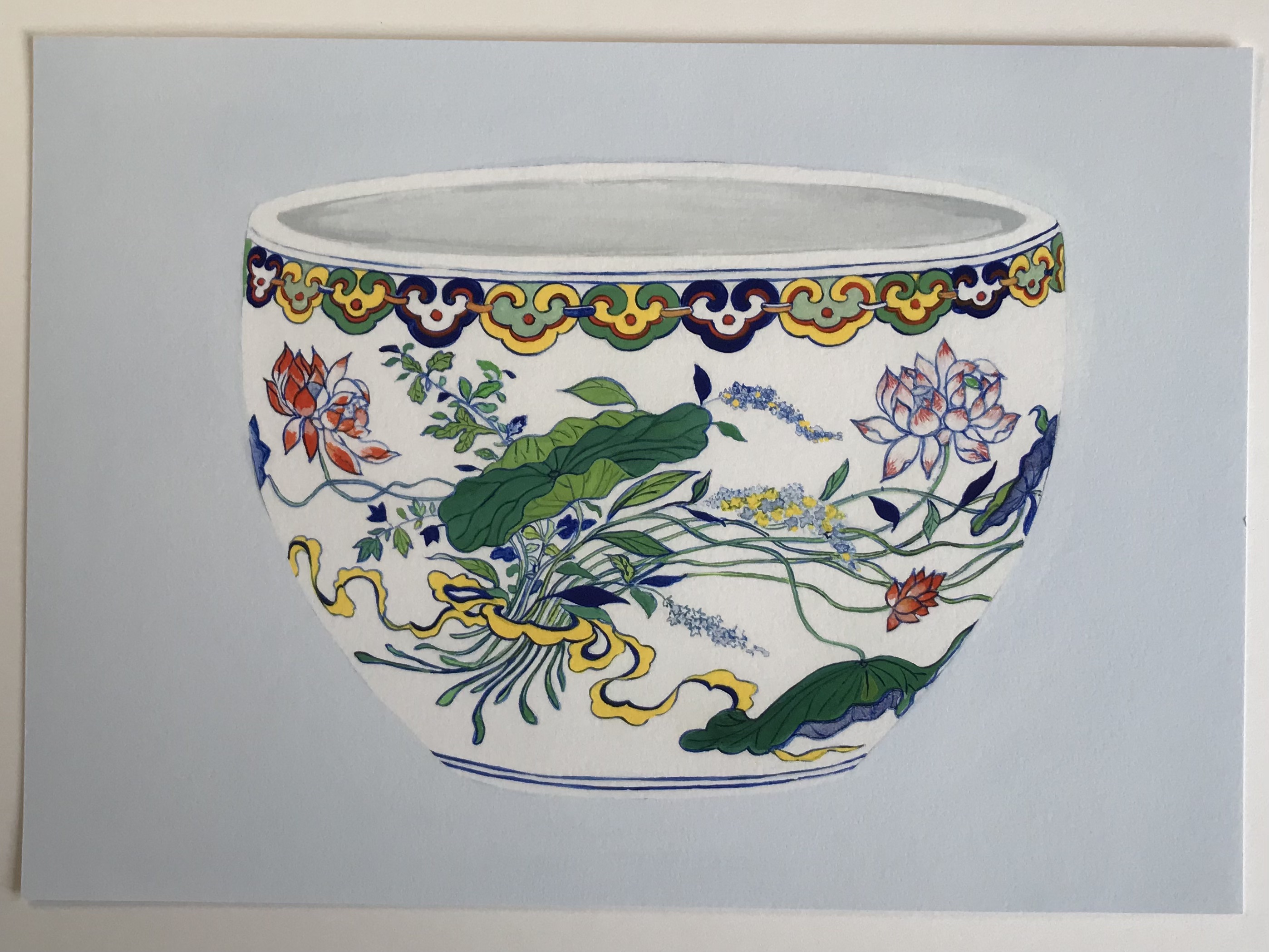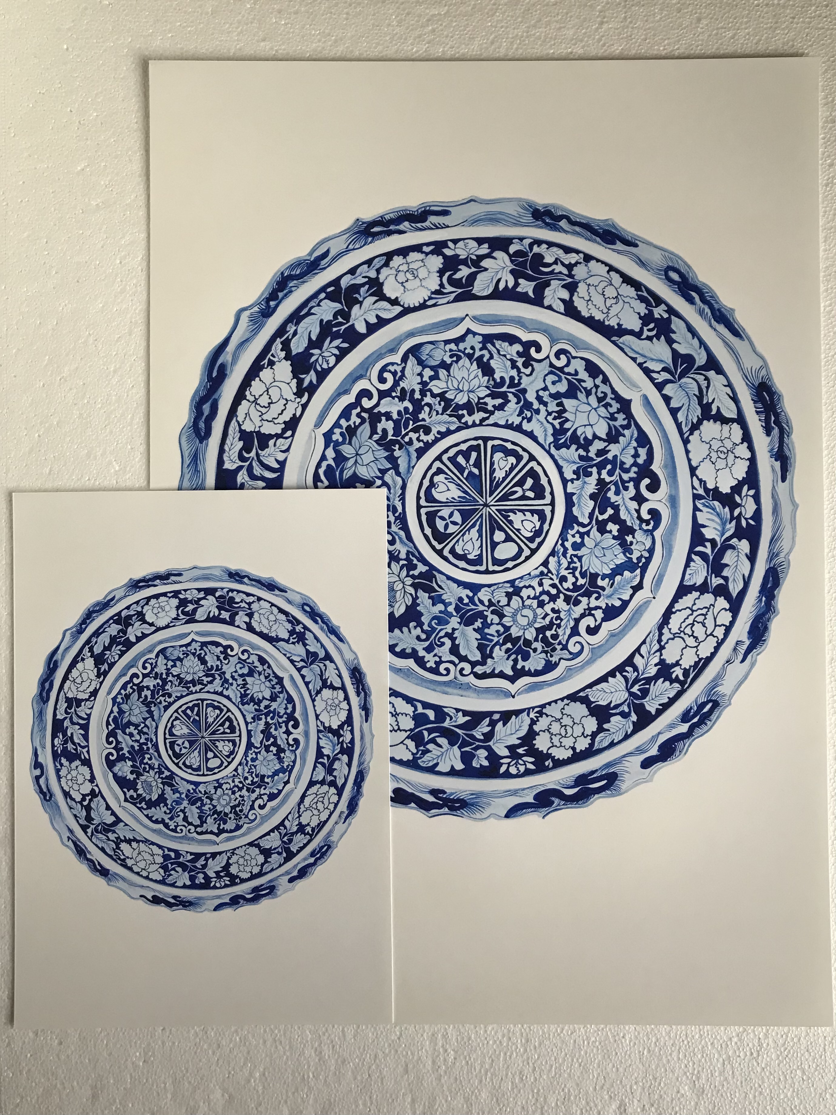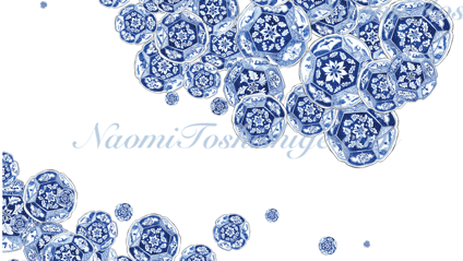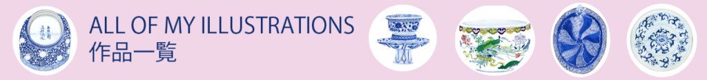 porcelain illustration especially blue and white by Naomi Toshishige