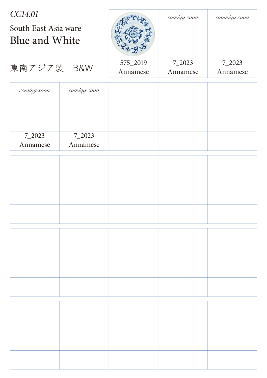 CC14.01 – South East Asia ware, Blue and White | 東南アジア製 ブルー&ホワイト